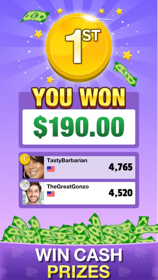 Compete against other players to win cash or virtual currency prizes