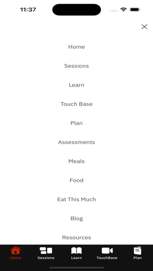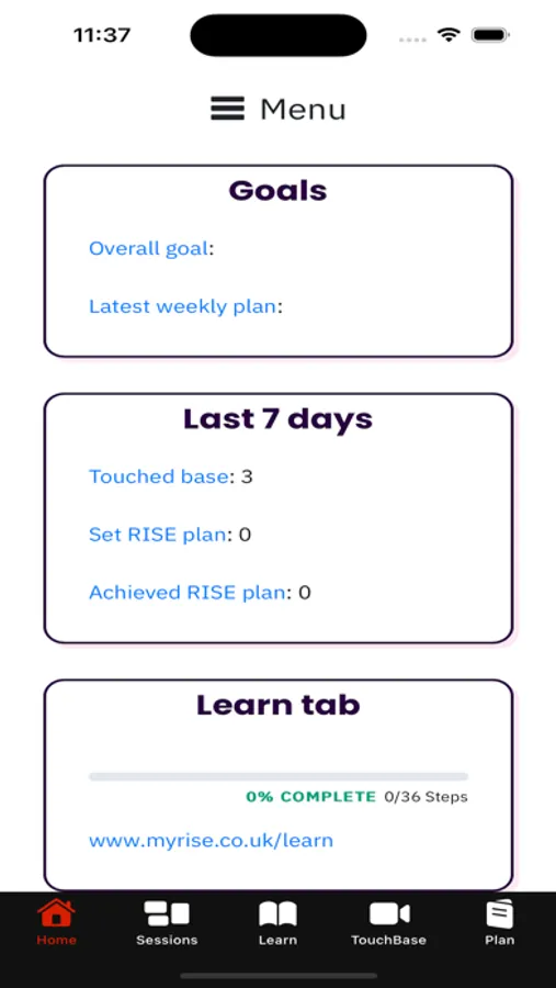 RISE members app - book your Sessions, Touch Base, set your RISE Plans, generate meal plans and much more