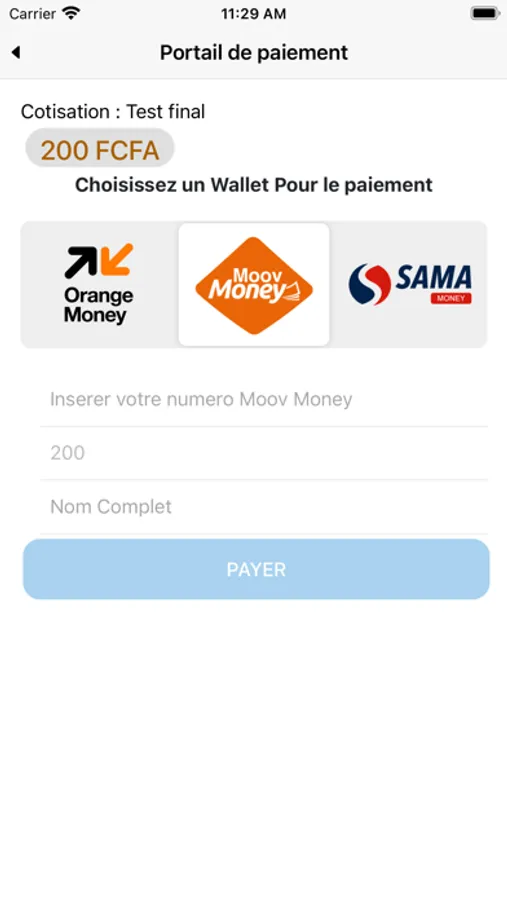 -Moov Money vers Sama Money et vice versa;