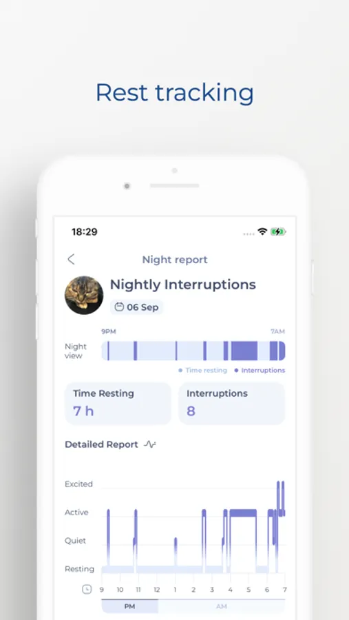 1- The smart collar will register your pet's daily activity and rest data, and you can input any relevant info (including symptoms and medical history) through the app to guarantee nothing goes unnoticed.