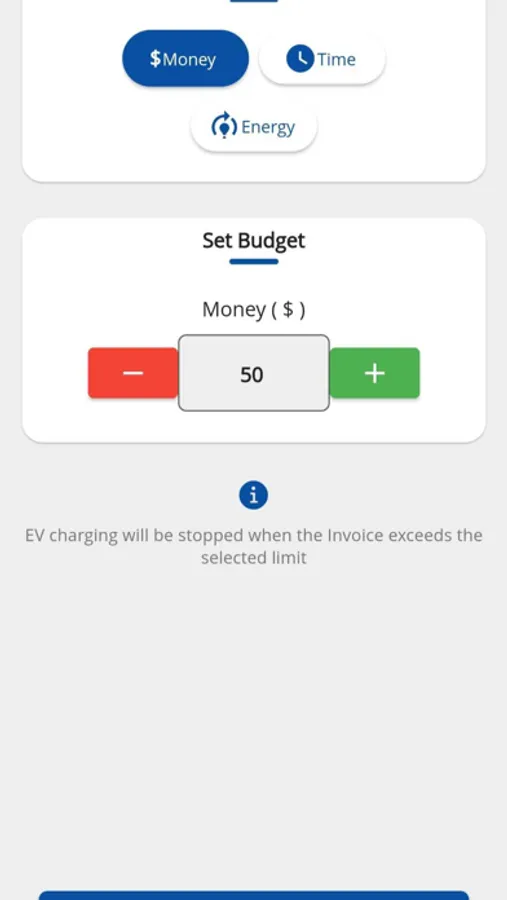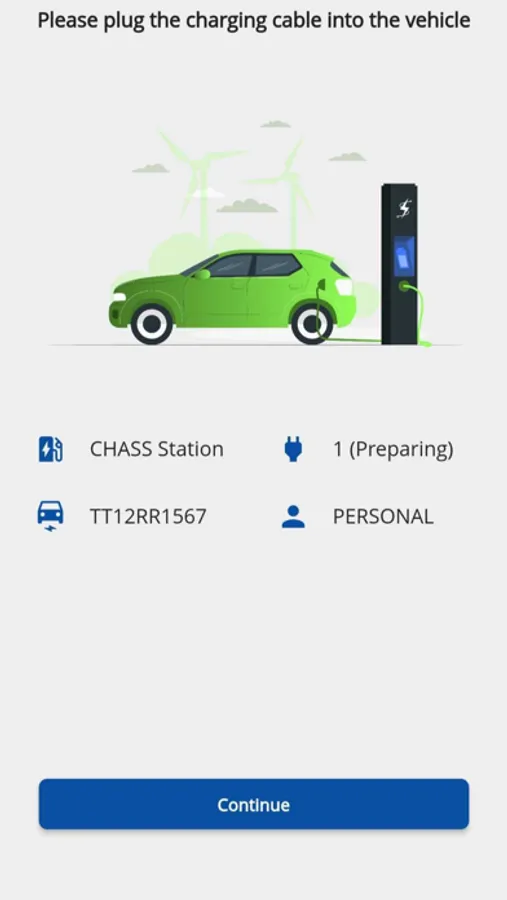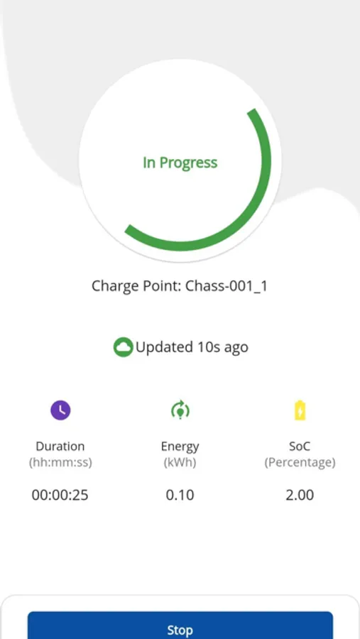 . Simple scan action, select type of charging (Time/Energy) and proceed.