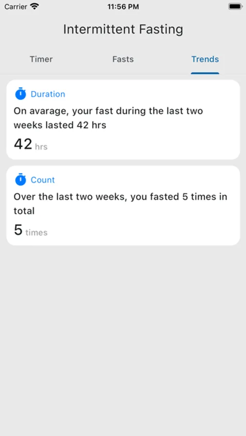 Gain insights into your fasting habits and see how they evolve over time. Discover trends and patterns to fine-tune your fasting routine for optimal results.