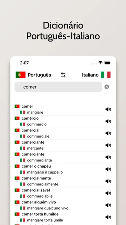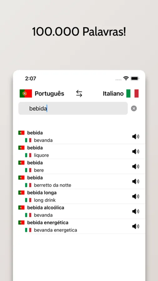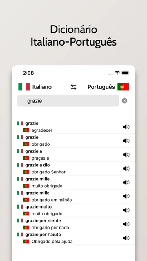 - Capacidade de buscar palavras em Italiano ou Português