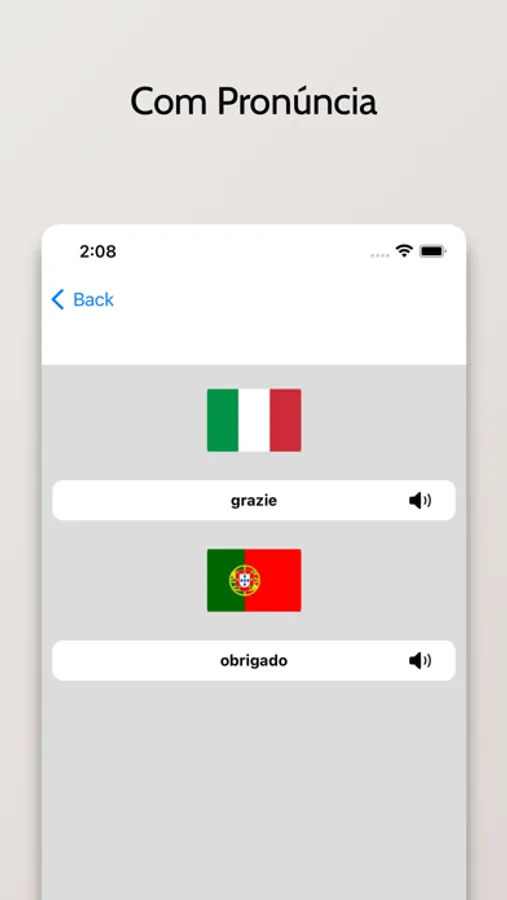 - Pronuncie a palavra em Italiano na lista de pesquisa