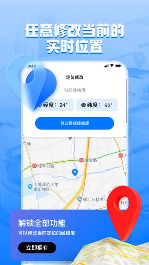 一款实用虚拟定位软件,可任意修改当前的经纬度改变实时位置定位,可通过虚拟定位规划出行路线出行方式,附带加密日记本,方便随时记录你的行程计划。