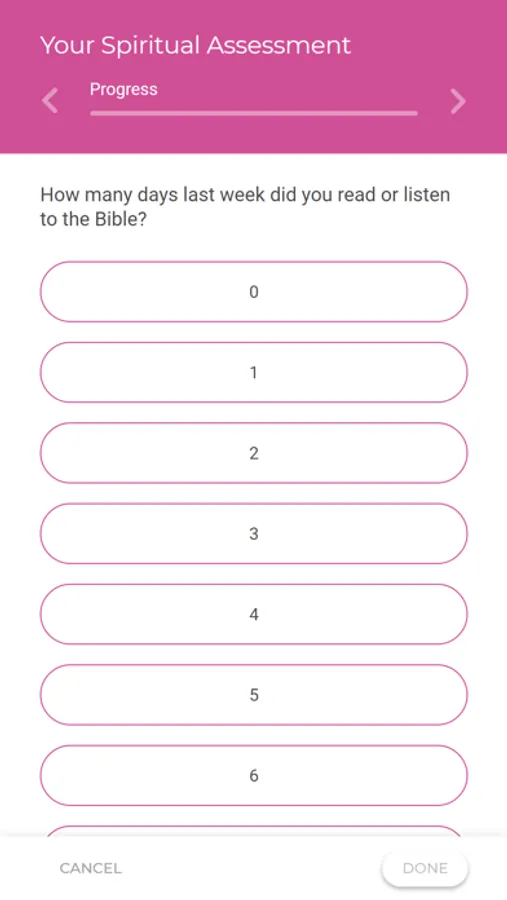 Built-in Spiritual Assessment to help you navigate the Bible and trigger daily verses custom-fit to you.