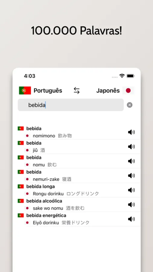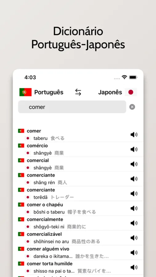 - Pronuncie a palavra em Japonês na lista de pesquisa