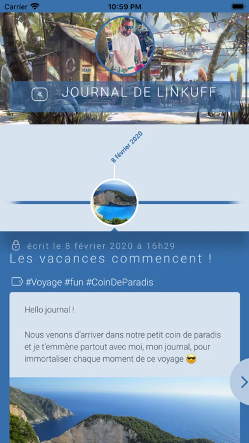 Accède à ton journal de voyage, ton journal intime, tes notes, ton mémoire... depuis n'importe où dans le monde, depuis n'importe quel smartphone, tablette ou ordinateur (sur diariste.fr). Que ce soit dans quelques heures, quelques jours ou même quelques années, retrouve l'historique de tous tes écrits et revis tous tes moments forts.