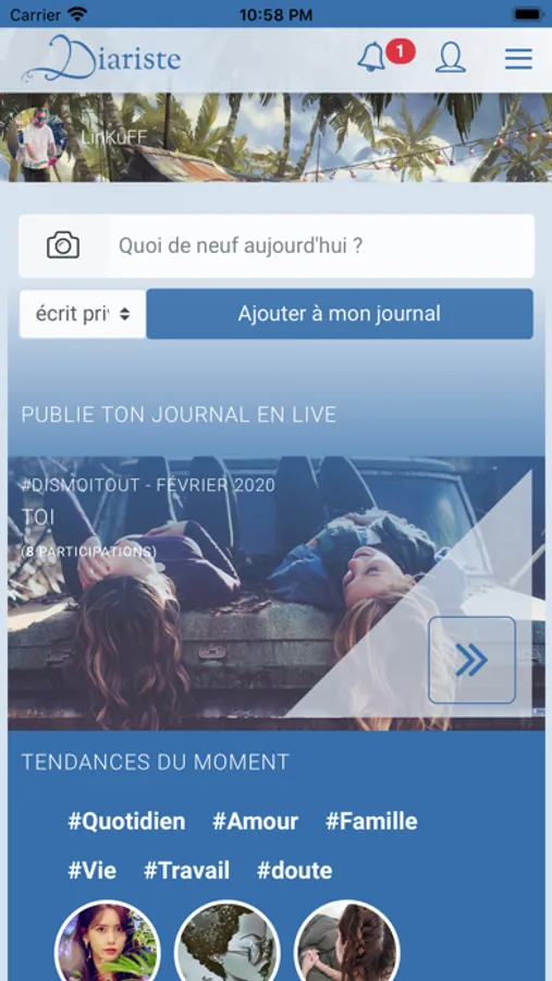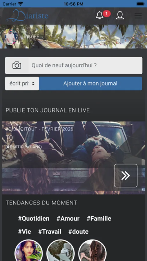 Rejoins la 1ère communauté française du journal intime avec + de 75 000 utilisateurs ! Diariste, c'est la possibilité d'avoir ton journal intime en ligne, gratuit et sécurisé.