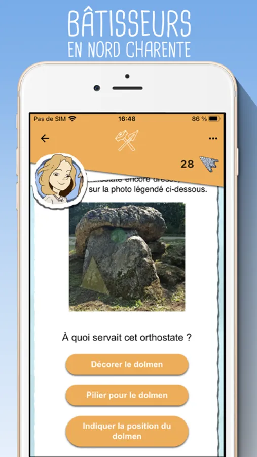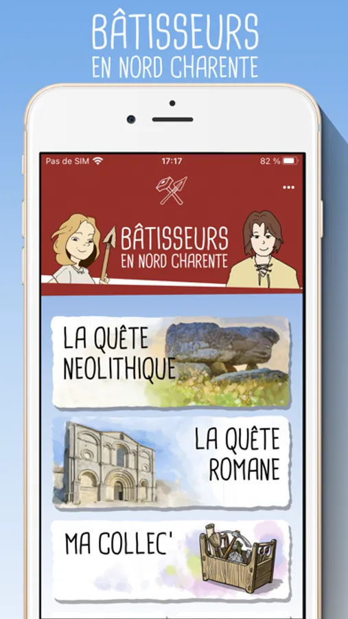 Aux côtés d'Hati, voyageur du temps, parcours le néolithique pour aider Néole à construire son village et plonge ensuite dans l'art-roman pour bâtir une église avec Guillaume ! Découvre différents métiers qui t'aideront dans ta quête et deviens un bâtisseur en Nord Charente. Prêt à t’embarquer dans un voyage inoubliable ? Alors, c’est parti !