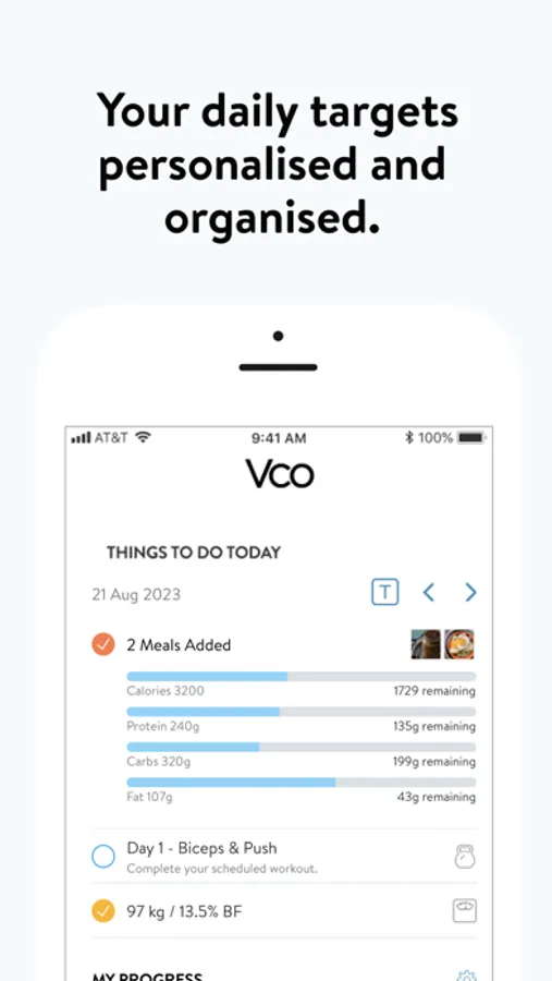 Control your nutrition with the in-app nutrition tracker or easily integrate MyFitnessPal.
