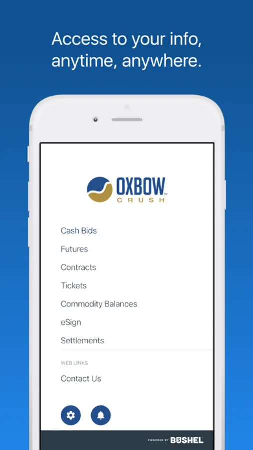 The Oxbow Crush app is free, secure, and developed by the industry-leading Bushel platform.