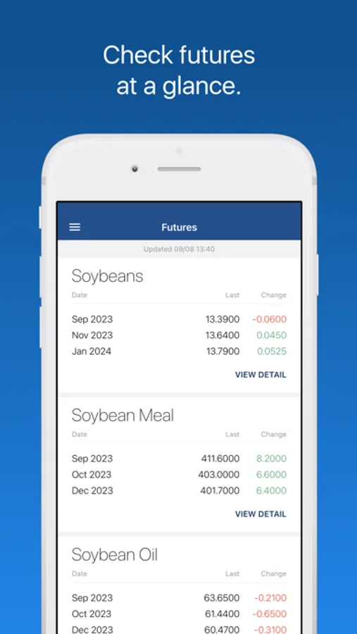 Futures: See Grains, Feed, Livestock, and Ethanol futures listed in order of your preference