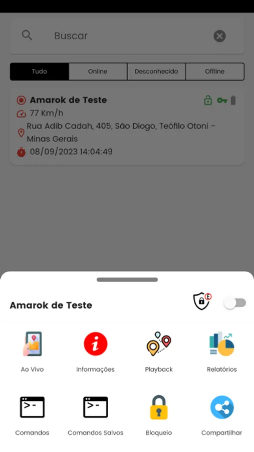 - Bloqueie e Desbloqueie seu veículo quando quiser.