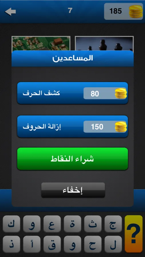 - وسائل مساعدة وهي إزالة الحروف و كشف الحرف .