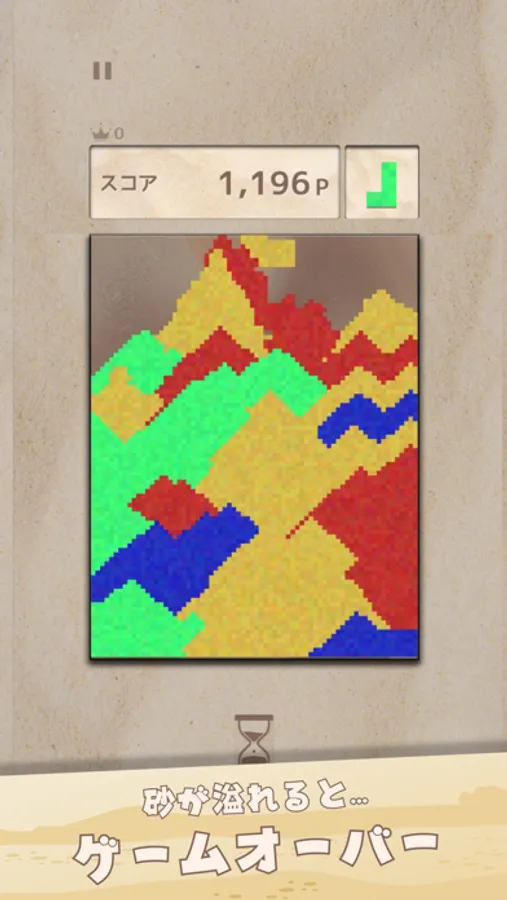 砂が画面上部まで積み上がるとゲームオーバーです。