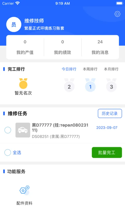为维修厂技师量身定做的一款手机应用程序,随时随地接收派工任务、技师对车辆项目检测、维修、完工等处理,以及可查看个人绩效明细工资。