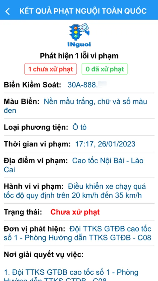 - Thông tin phạt nguội thường gồm: thời gian, địa điểm vi phạm, hành vi vi phạm, đơn vị phát hiện, và thông tin chi tiết nơi để bạn có thể liên hệ giải quyết vụ việc.