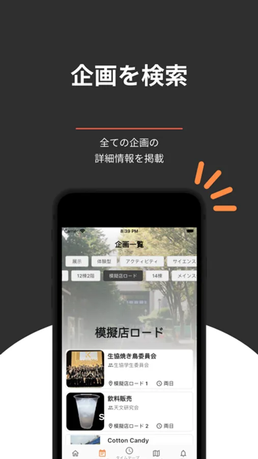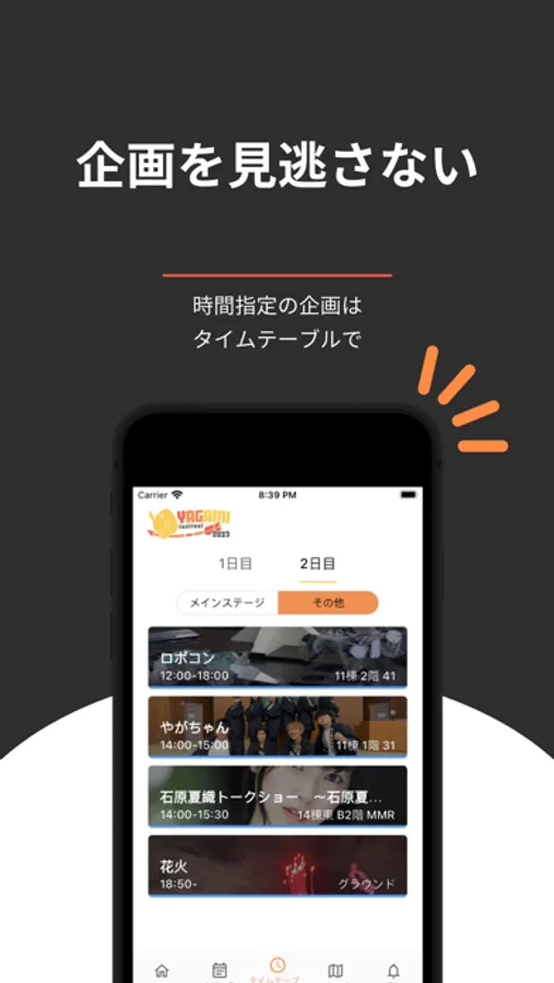矢上祭に関する緊急のお知らせ、企画に関するリアルタイムな情報がユーザに通知されます。
