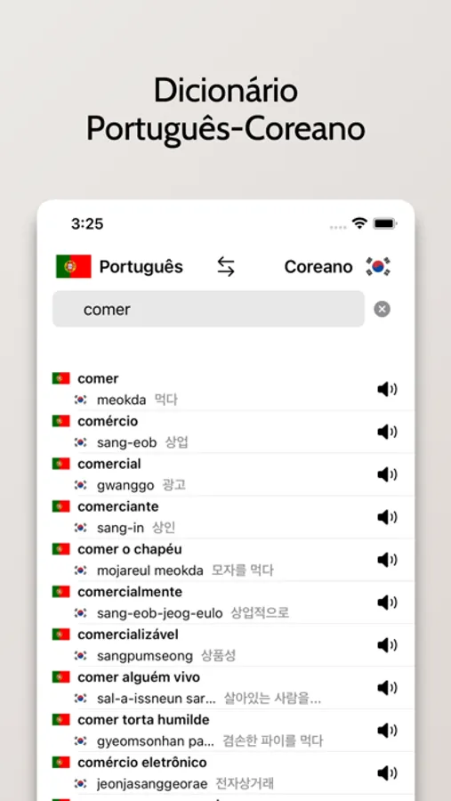 - Pronuncie a palavra em Coreano na lista de pesquisa