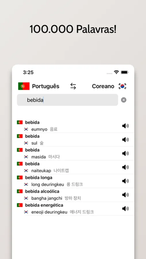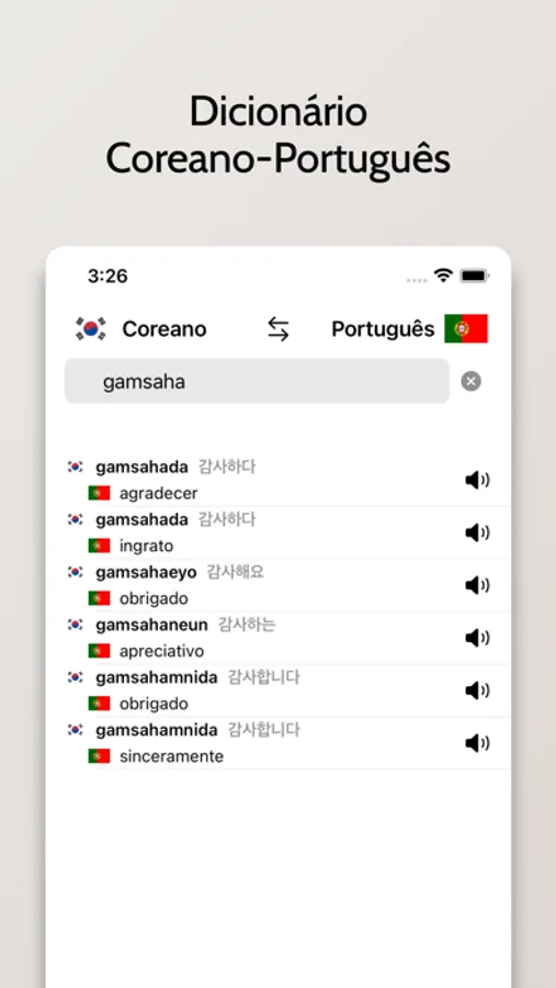 - Capacidade de buscar palavras em Coreano ou Português