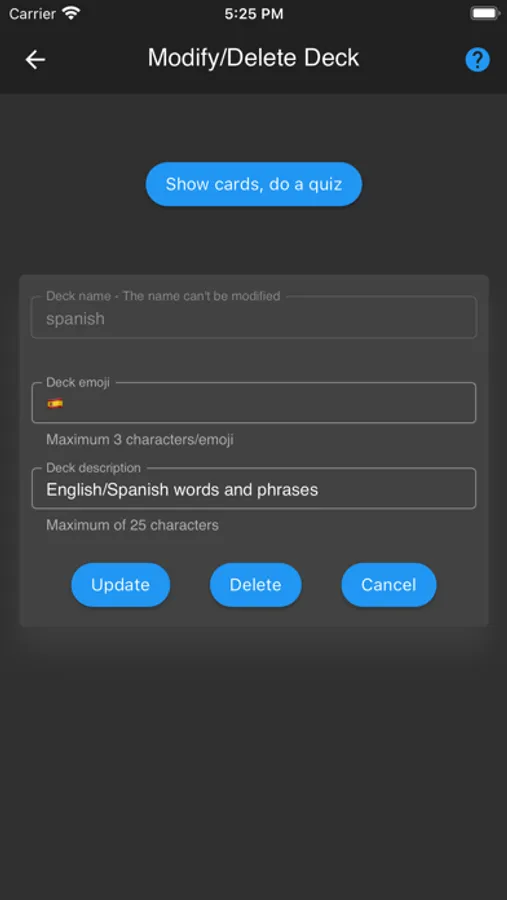 You can add or modify a deck or add and modify cards in a deck. Therefore, the application has all the capabilities of a flashcard maker.