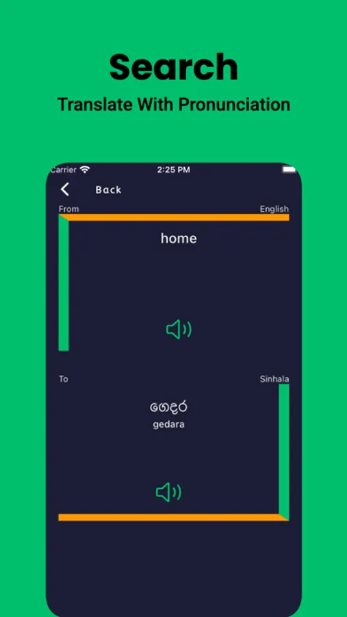 You can also reverse the dictionary, it will translate Sinhala to english words that allow you to search words in Sinhala language and it will given the corresponding english translation.