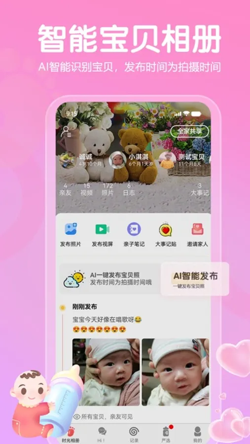 妈妈的关爱自然不可少,我们准备了一些其他的工具,如常用的记账可以邀请爸爸一起记录开支、AI测试颜值、穿搭服务、抑郁测评、卫生巾选择、私密日记(仅自己密码可见)等等实用工具,让您用起来更加的贴心。