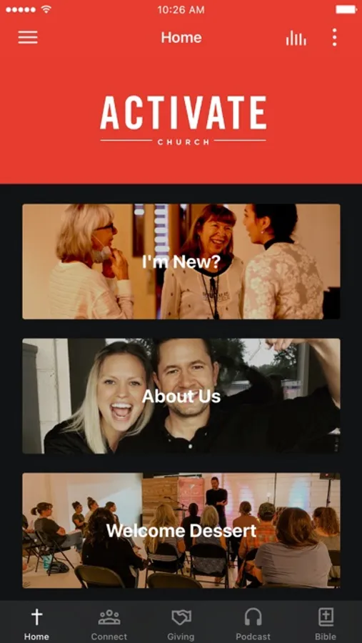 The Activate Church app is the ultimate mobile church app. Getting involved, giving, reading and listening to the Word of God becomes a breeze with the Activate app, with easily accessible tabs for navigating through the app!