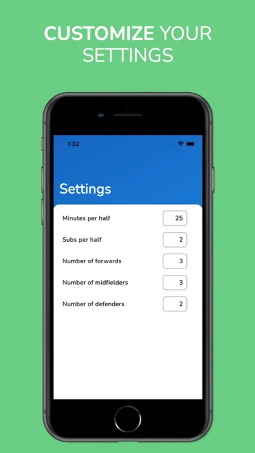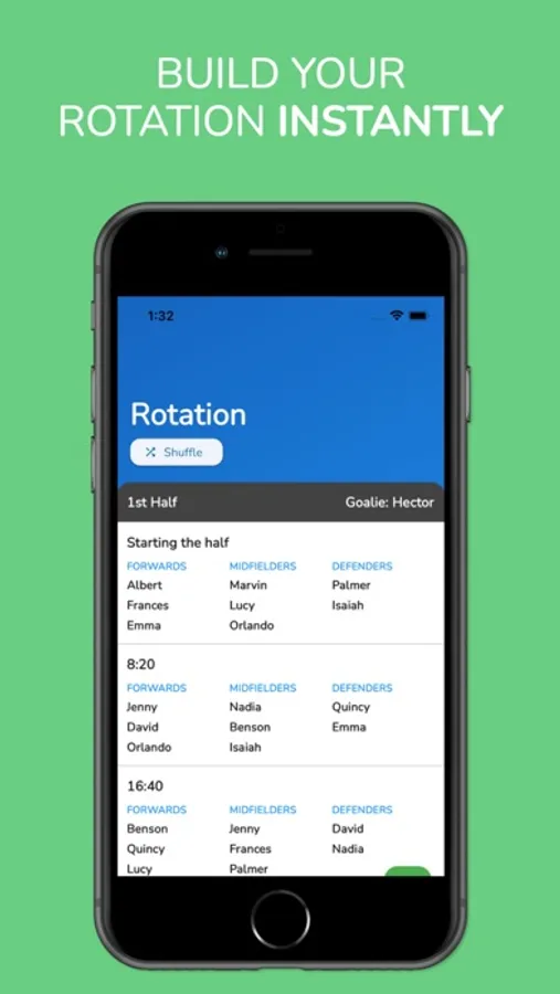 Make rotations easy for your rec soccer team. This app allows you to customize settings to fit your league, then builds a rotation automatically to ensure everyone gets an opportunity to play.