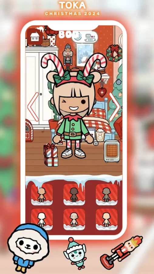 **2. Customize Toka:** Make Toka your own by personalizing their appearance with your unique style. Experiment with different outfits, accessories, and colors to design the cutest and most stylish Christmas-themed looks.