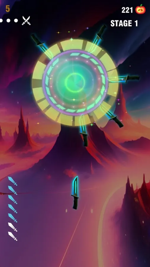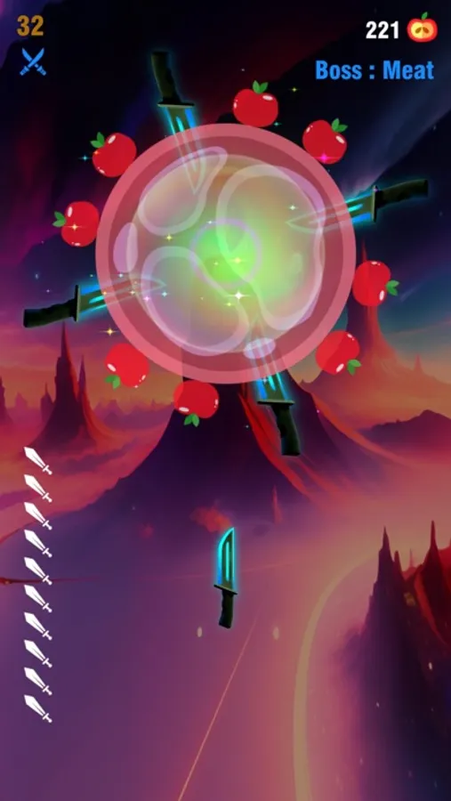 Throw the knives into the logs to break them. Slash the apples and unlock new knives. Each 5th stage is defended by a boss - beat them to get exclusive knives!