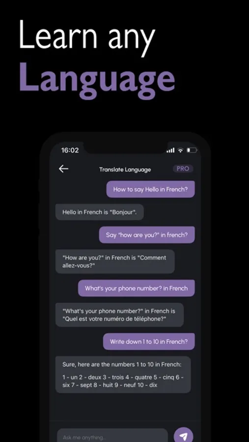 You can translate text, acquire language skills, and even use Think Chat as an educational tool to play the role of a teacher!