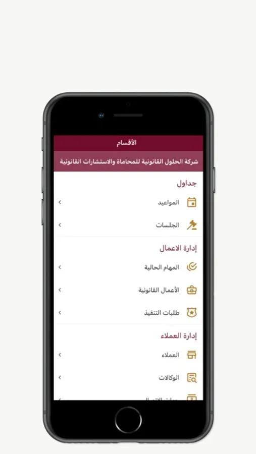 الوصول إلى المعلومات القانونية: يوفر التطبيق للعملاء والمحامين إمكانية الوصول إلى مجموعة واسعة من المعلومات القانونية، بما في ذلك القوانين والقرارات القضائية والوثائق القا نونية الأخرى.