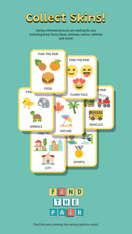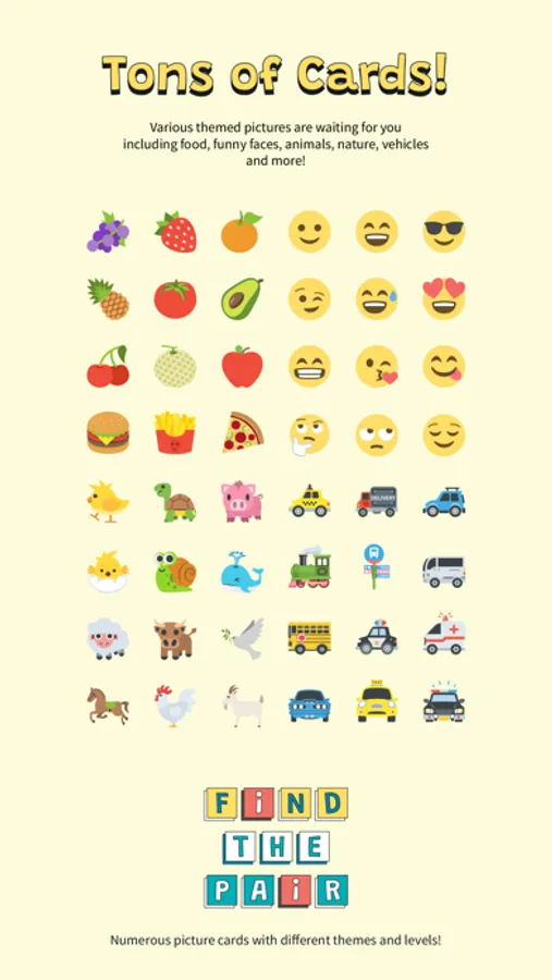 - This Find the Pair game is a great memory and brain training for kids and adults.