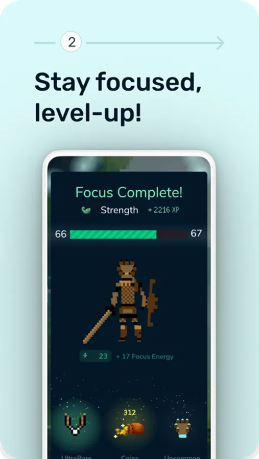 - As you conquer your goals, your hero levels up, finds loot, and earns Focus Energy