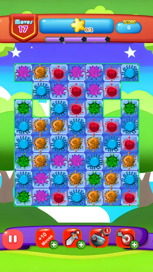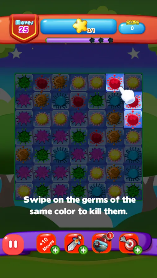 Difficulty: As the player advances through the game, levels become progressively more challenging in math 3 puzzle games like Germ Crush. This could involve introducing new mechanics, increasing the number of required matches, or imposing time constraints in this Match 3 Game.