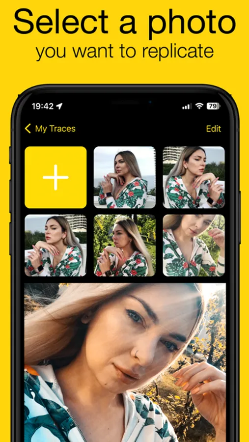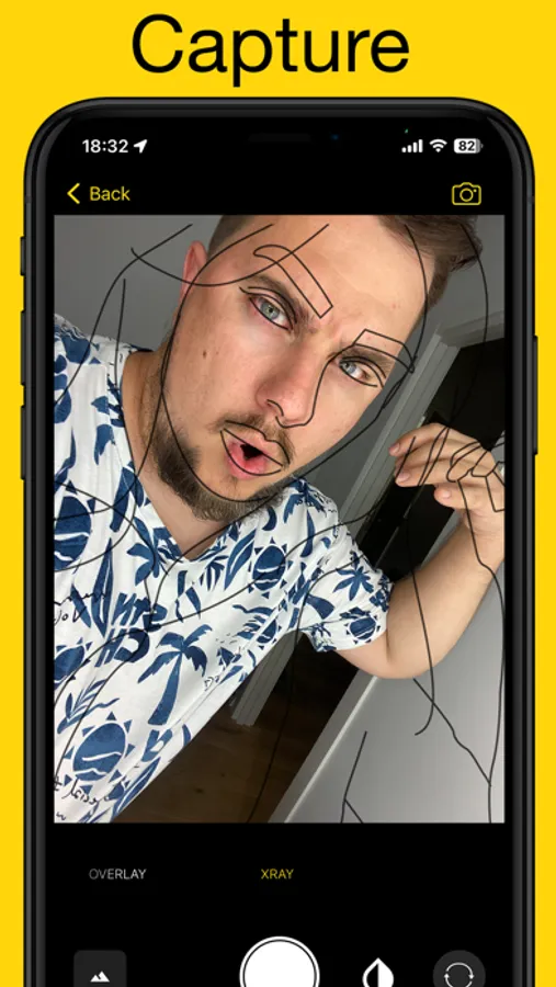 The CopyCam app allows you to turn any photo into a stencil for further shooting. Simply upload any photo, adjust the stencil, and switch to shooting mode. The stencil will appear over your viewfinder. There will be no stencil on the final shots.