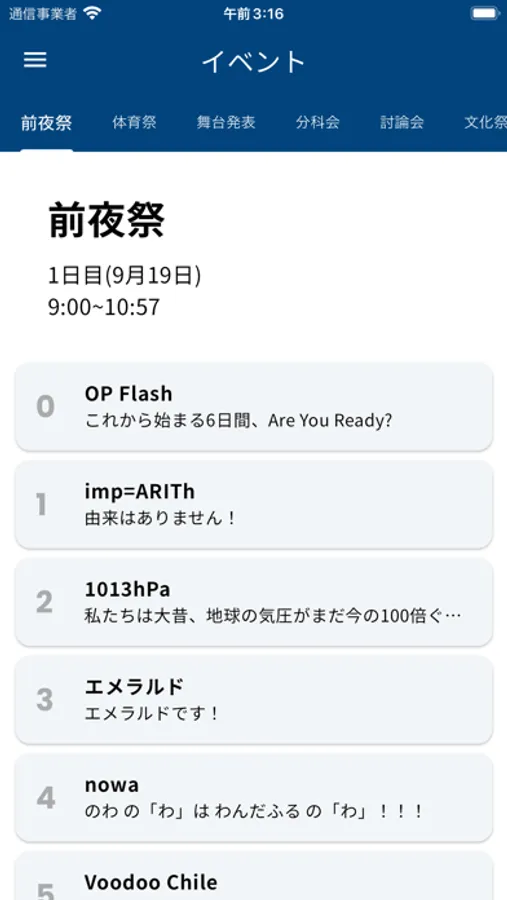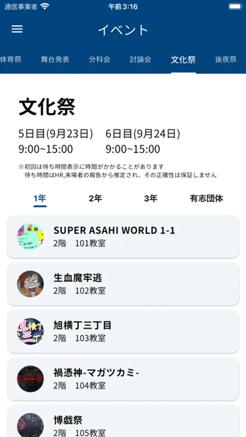 三年生の劇や有志団体発表のスケージュルを見れる!