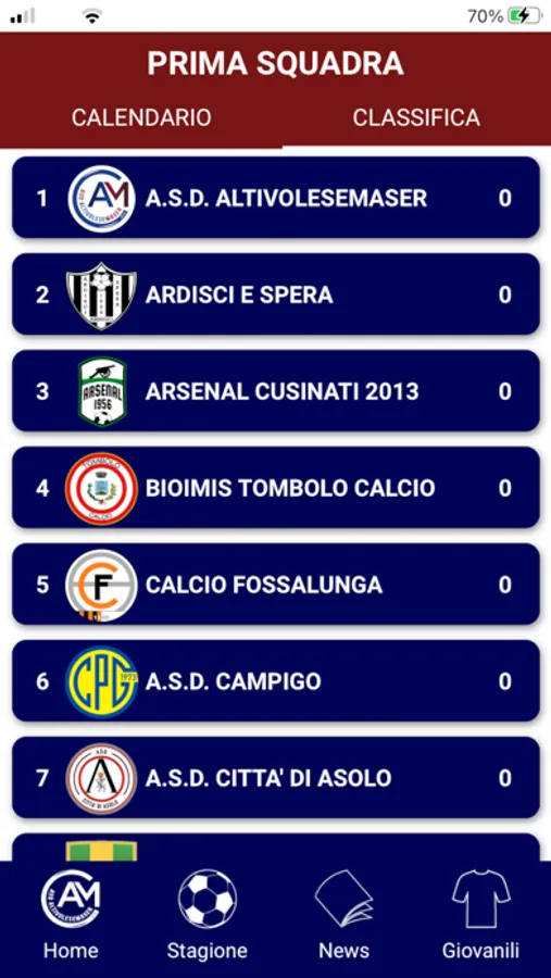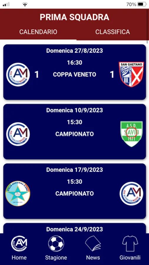 Scarica l'app MyAM e consulta con un semplice tap le informazioni disponibili su classifica, calendario e risultati di tutte le nostre squadre.