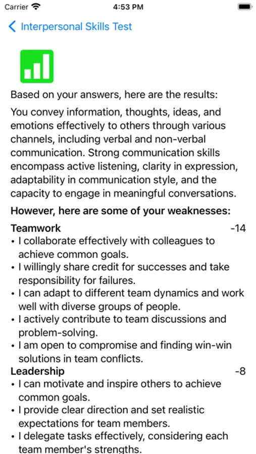 This app is a self-assessment test to evaluate your interpersonal skills. Take the test to find out which ones are your strengths, and weaknesses.