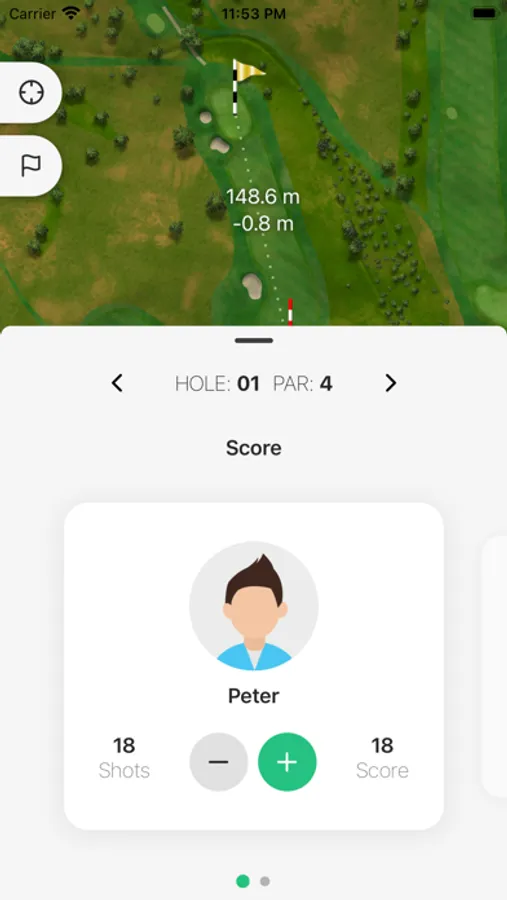 * Abstands-Messung zu dem Pin oder einem ausgewählten Punkt auf dem Golfplatz mit dem GPS-System