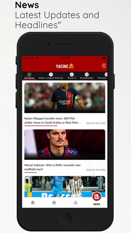 Experience the thrill of soccer like never before with Yacine Pro, your ultimate companion for all things live soccer. Whether you're a die-hard fan or just dipping your toes into the world of football, Yacine Pro is designed to cater to all your soccer needs, making sure you never miss a beat.