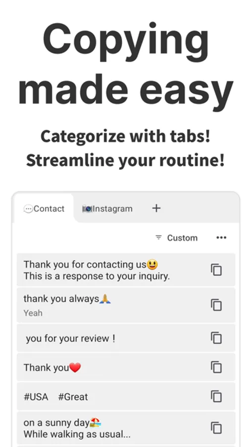 You can quickly copy any text you've registered.