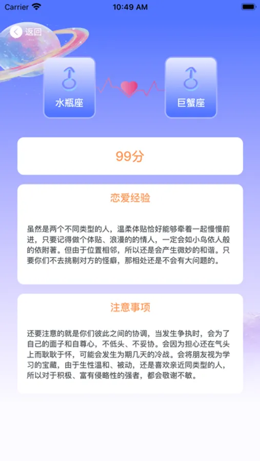 二、两个不同的星座不同时间,爱情运势也是不同的,星座匹配让您一目了然。