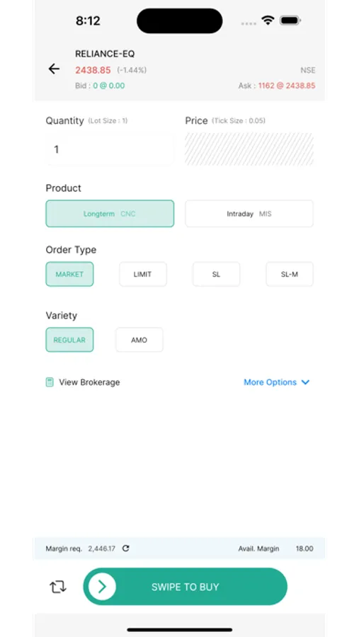 - Various order types: Regular, AMO, BO (Bracket orders), CO (Cover orders)