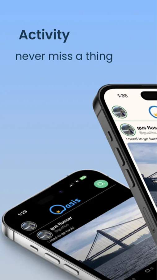 Stay Connected: Keep your friends and followers in the loop about your adventures, accomplishments, and everyday moments. Oasis lets you effortlessly share updates and photos, making it easy to stay connected with your college community and beyond.