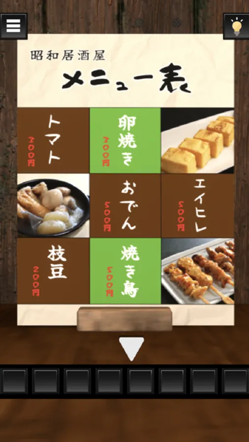 ・画面右上のヒントボタンを押すと、ヒントが見れる。