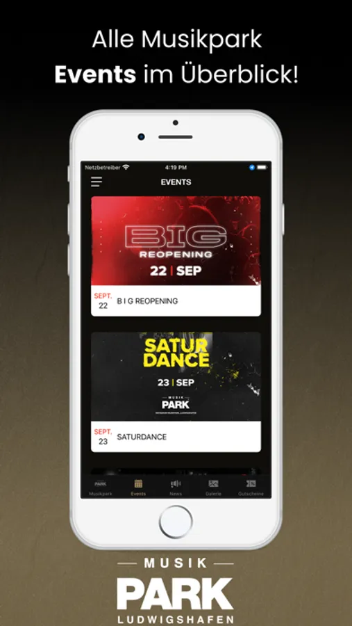 Lade Dir unsere Musikpark Ludwigshafen APP herunter und werde Mitglied im Memberclub.