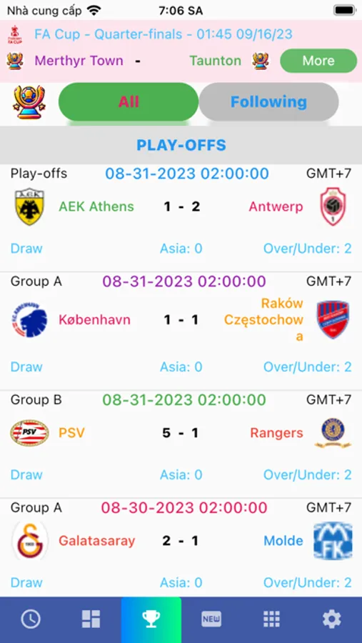 Along with the artificial intelligence algorithm, our application will predict which team will be over and how many handicaps, how many goals the match will have, ...